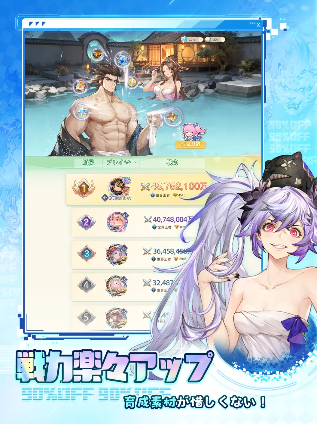 『放置少女〜百花繚乱の萌姫たち〜』は、三国志の英雄たちが美少女化して登場する、超人気の放置系RPGです。アプリを閉じている間もキャラが自動で戦い、経験値や装備を集めてくれるので、忙しい人でも気軽に育成を楽しめます。 500人以上のキャラクターが登場し、全員が豪華声優ボイス&Live2Dアニメーション付き。推しキャラを自由に育てる「覚醒」「装備強化」「陣営ボーナス」など、やり込み要素も満載です。 PvPアリーナやギルド戦など、他プレイヤーとの競争・協力コンテンツも豊富。無課金でもコツコツ遊べる設計ながら、課金すればより効率的に最強チームを目指せます。 美少女育成×戦略×放置のバランスが絶妙な、“癒しと達成感”が同居する大人気RPGです。