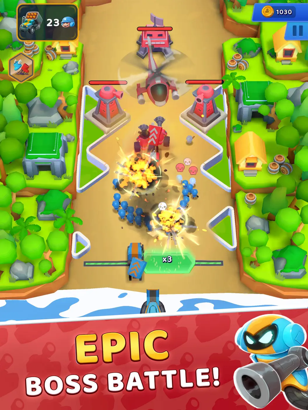 「Grunt Rush」は、軍を指揮して敵基地を制圧する戦略型アクションゲームです。兵士を送り出し、増殖タイルを通過させることで部隊を一気に増やしながら敵陣へ攻め込みます。シンプルな操作ながら、どのルートを選ぶか、どのタイミングで進軍するかといった判断が勝敗を左右するため、戦略性の高さが魅力です。ステージごとに異なる地形やギミックが用意されており、プレイするたびに新しい戦術を試す楽しさがあります。また、オフラインでも遊べるため、通勤中や空き時間にも気軽にプレイ可能。爽快なアクションと奥深い戦略が融合した、中毒性の高いバトルゲームとなっています。
