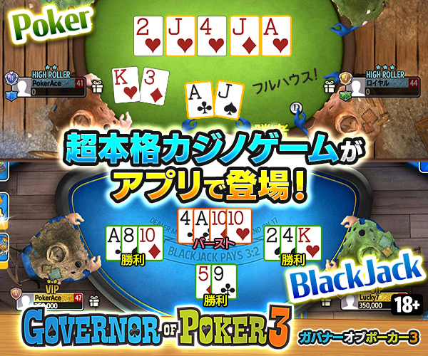 『ガバナー・オブ・ポーカー3(Governor of Poker 3)』は、世界中のプレイヤーとリアルタイムで対戦できる本格ポーカーアプリです。メインルールはテキサスホールデムで、初心者でも直感的に覚えられる丁寧なチュートリアルが搭載されており、役の強さやベットの流れ、ポジションの重要性まで実戦形式で学べます。さらに、キャッシュゲーム、トーナメント、スピードポーカーなど多彩なゲームモードを収録しており、短時間でも本格的に遊べるのが魅力です。また、アバターのカスタマイズや街の発展といった育成要素もあり、ただのカードゲームにとどまらない深いゲーム体験が楽しめます。イベントやデイリーミッションでチップを集められるため無課金でも長く遊べ、課金すれば快適性がさらにアップ。初心者から上級者まで幅広いプレイヤーに愛される人気アプリです。