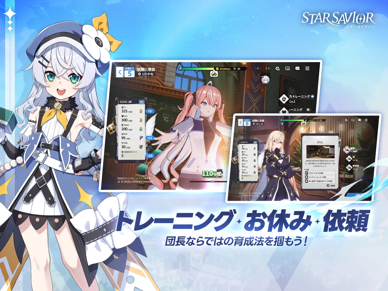 『スターセイヴァー』は、STUDIOBSIDEが手がける育成シミュレーションRPGで、星の力を持つ「救援者(キャラクター)」たちを導く団長として冒険を進めていくゲームです。本作の最大の魅力は、ウマ娘のようなサクセス形式でキャラを育てる「救援の旅」と、アニメ級3D演出で描かれるターン制バトル「作戦モード」が融合した独自システムにあります。育成では力・体力・集中などのステータスを鍛え、トレーニングやイベントを通じてキャラクターの個性を深く知ることができます。水着トレーニングやデートイベントなど、推しへの愛着が自然と深まる演出も豊富です。育成後はステラアーカイブを装備し、戦略的なコマンドバトルへ挑戦。ノヴァフォース管理による奥深い戦闘が楽しめます。無課金でも時間をかけてじっくり強くなれる設計で、新規ユーザーでも遊びやすい注目の育成RPGです。